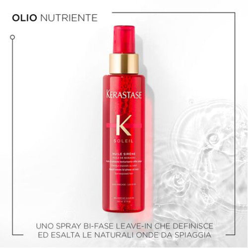 Kerastase Soleil protegge i capelli dagli effetti dannosi di sole, sabbia, salmastro, umidità e cloro, tutti fattori che possono sensibilizzare la fibra capillare, deteriorando e disidratando i capelli. Il colore perde luminosità mentre la fibra capillare diventa sempre più sensibile e più arida, e gli effetti dei raggi UV possono portare danni irreversibili ai capelli. Kerastase Soleil è la linea di prodotti solari Kerastase per proteggere efficacemente i capelli durante l’esposizione al sole e dagli agenti esterni. Grazie ai prodotti Soleil di Kerastase i capelli rimangono forti, idratati, luminosi e soprattutto protetti contro i raggi UV.