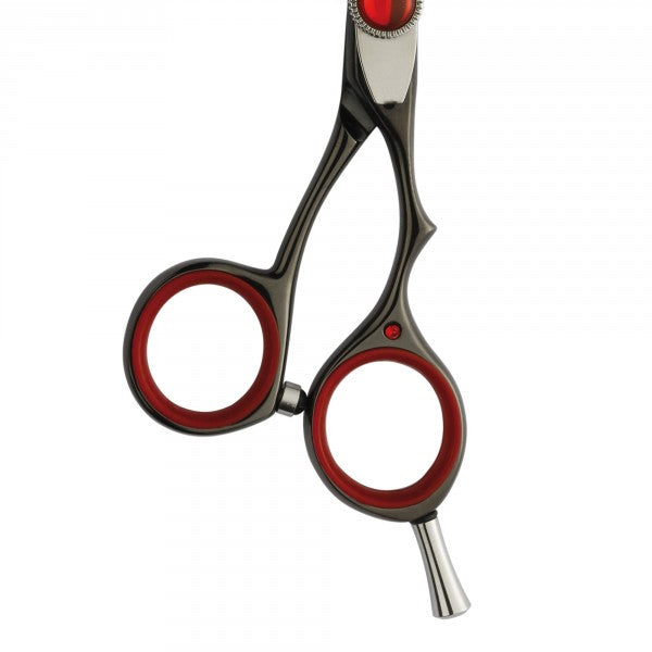 Oriente di Leader è un modello di forbici professionali per capelli particolarmente ergonomico. La sua caratteristica principale salta agli occhi per l’estrema eleganza: il rivestimento è in titanio nero. Oltre al pregio estetico il titanio protegge la vostra forbice dagli agenti esterni e ne rende la superficie antigraffio.